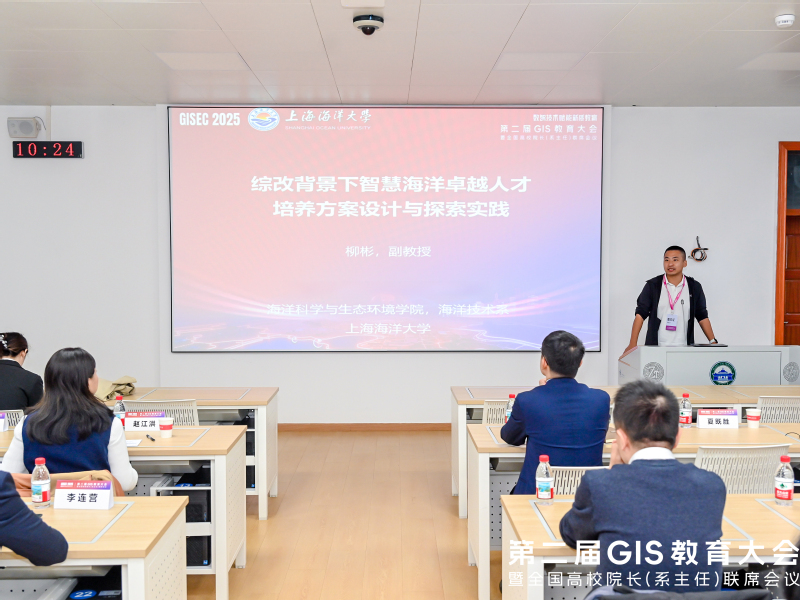 应会议组委会邀请,上海海洋大学海洋科学与生态环境学院副院长林军、海洋技术系副主任柳彬于10月25—26日赴武汉大学参加第二届GIS教育大会暨全国高校院长(系主任)联席会议。大会由自然资源部地理信息系统技术创新中心、教育部高等学校地理科学类专业教学指导委员会主办,以“数智技术赋能新质教育”为主题,汇聚全国GIS教育领域专家学者和行业代表,分享数智技术赋能GIS教育的最新成果,共同探讨产教融合、校企协同育人、课程体系与产业需求对接等关键议题,推动GIS教育高质量发展。