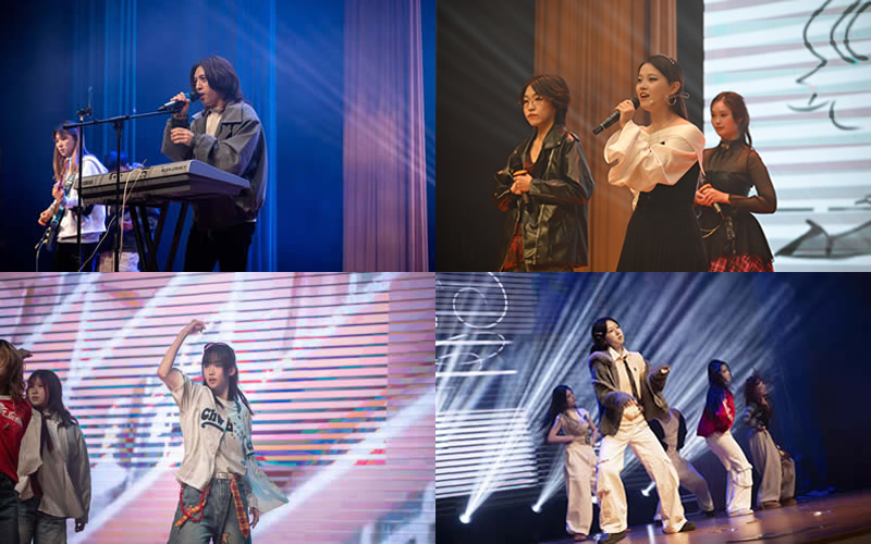 第三篇章的抽奖环节将晚会气氛推向高潮。作为奖品,憨憨熊拍拍小夜灯为冬日增添了别样温暖。徐偲涵、杨舒淇的舞蹈《你可以慢点走+intentions》刚柔并济,风亦流行街舞社的《这就是街舞》燃动全场,陈保霖的原创嘻哈《滴水》唱出追梦路上的热爱与坚守,耿嘉的独唱《枫》勾勒出青春的细腻情愫。晚会在师生代表共同演绎的《明天会更好》中落下帷幕,温馨的合唱传递着携手同行、共赴深蓝的美好期许。