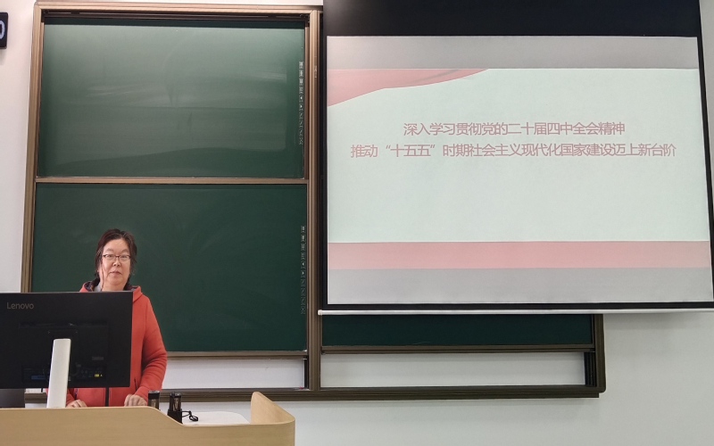 11月25日下午,上海海洋大学海洋科学与生态环境学院邀请校关工委郑黎芳为入党积极分子培训班学员作了题为《深入学习贯彻党的二十届四中全会精神,推动“十五五”时期社会主义现代化国家建设迈上新台阶》的专题讲座。本次讲座面向海科学院、海资学院和工程学院入党积极分子,通过专题讲座与学员汇报分享相结合的形式深化对党的最新理论成果的理解把握。