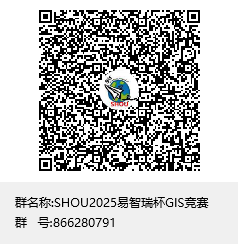 请各参赛项目队长扫码加入“SHOU2025易智瑞杯GIS竞赛”QQ群,申请入群时请备注“GIS2025”,入群后请阅读群公告(有意申报的同学可先进群)。
