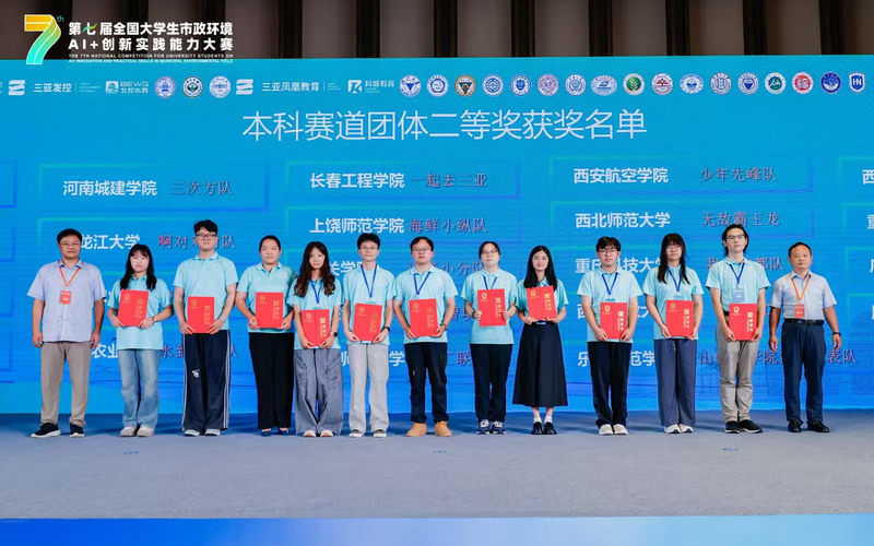 近日,第七届全国大学生市政环境AI+创新实践能力大赛在海南三亚落幕。由上海海洋大学海洋科学与生态环境学院黄宏副教授、冀世锋副教授指导,环境工程专业学生张丽涛、郭映孜和生态学专业学生黄依婕组成的团队荣获全国总决赛本科赛道团体二等奖,黄宏副教授荣获优秀指导教师奖。