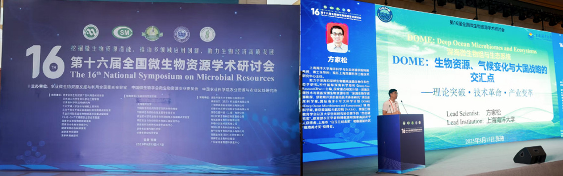 Keynote Speech: DOME co-hosted the 16th National Symposium on Microbial Resources, continuously expanding its influence. Professor Fang Jiasong, Chief Scientist of DOME, delivered a keynote report titled DOME: The Confluence of Biological Resources, Climate Change, and National Strategy, systematically elaborating on the critical role of deep-sea microorganisms in the carbon cycle, biomedicine, and global climate governance, which garnered widespread academic attention.